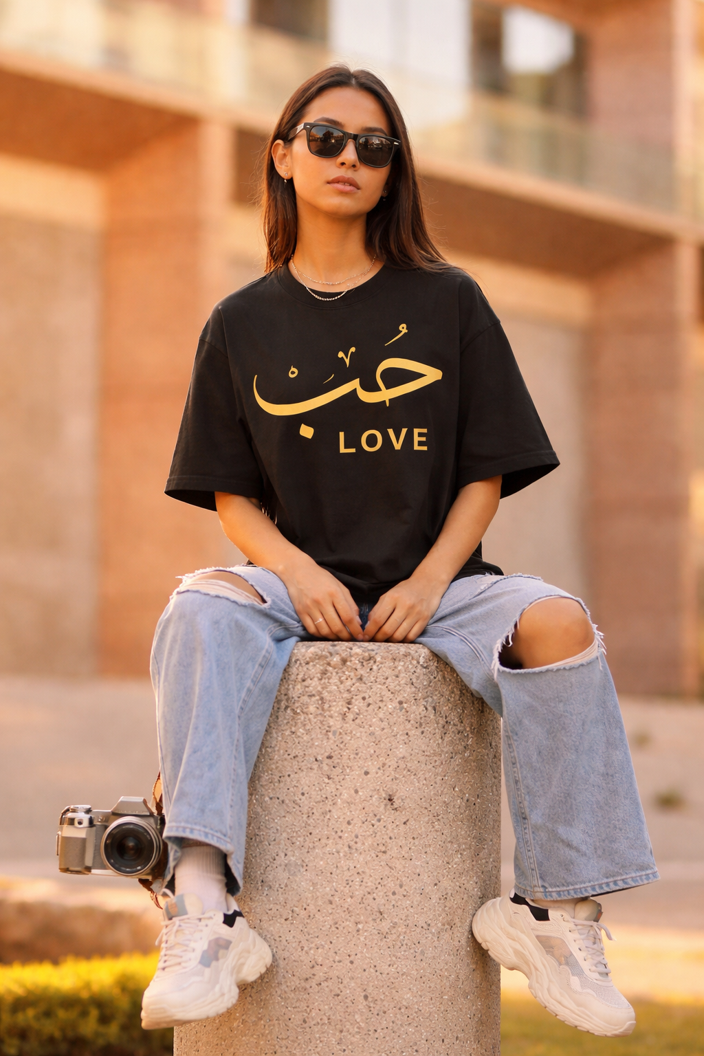 “Dubai Calligraphy” Women’s T-Shirt – Golden Arabic Logo Print 100% Cotton